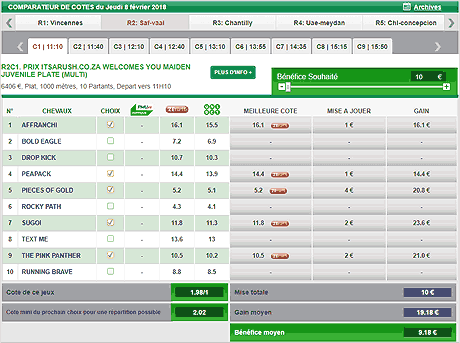 En jouant le même cheval, certains sites Internet vous font gagner plus. Il est donc intéressant de connaître la meilleure cote et le meilleur site à un instant donné.